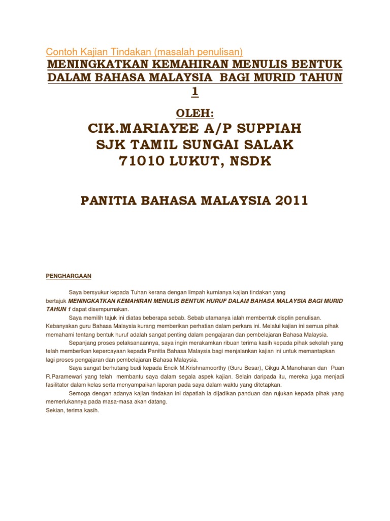 Doc Contoh Kajian Tindakan Masalah Penulisan Shamil Aiman Academia Edu