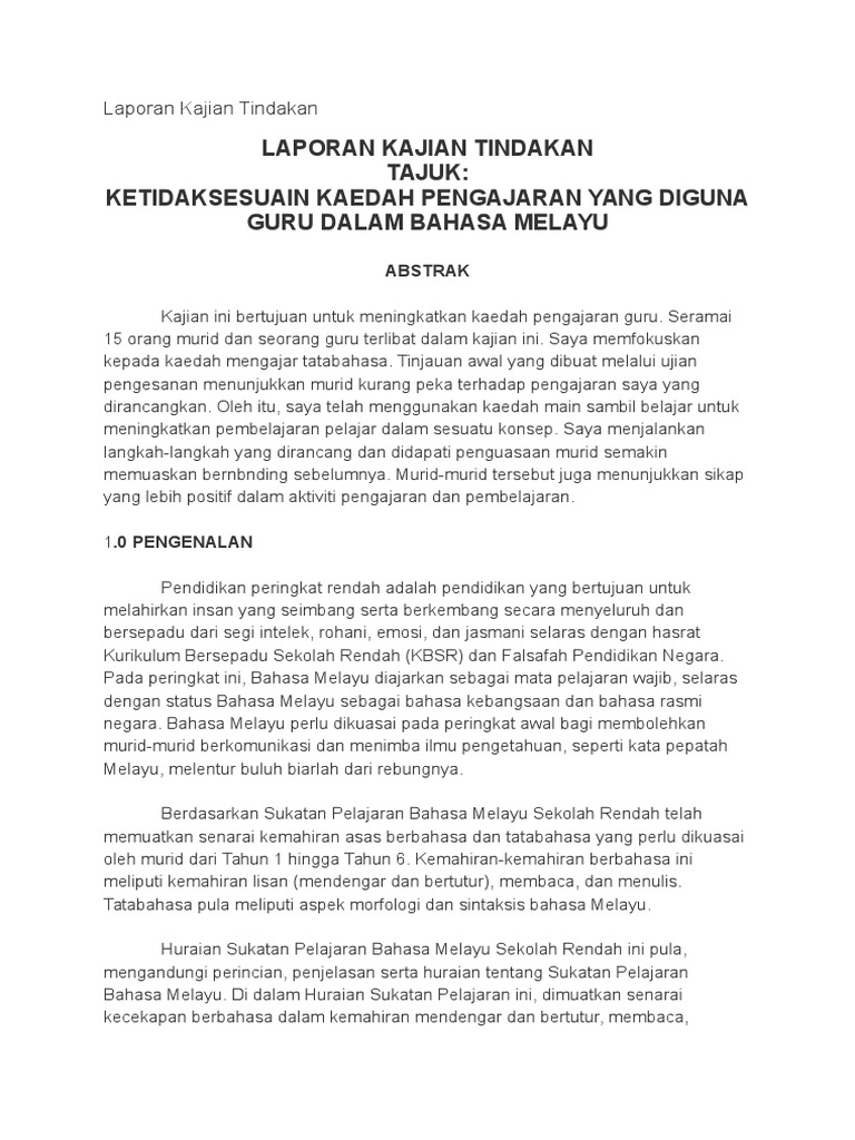 Contoh Laporan Kajian Tindakan